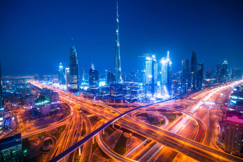 You should visit the Burj Khalifa in the evening, to enjoy the view over the illuminated city from the highest observation deck in the world.